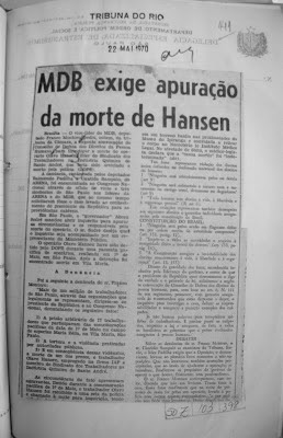 O sobrenome estabiliza-se, mutilado de um s, em 1970, e dessa forma, ele foi reproduzido pelos sindicalistas que protestaram contra sua morte, pelo MDB, pela imprensa da época (reproduzo um exemplo da Tribuna da Rio, mas há vários, seu caso foi amplamente noticiado, apesar da censura), pelas autoridades policiais. E, como Hansen, seu caso chegou à OEA e à OIT...