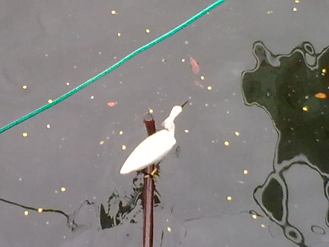 O declínio também ocorre nessa outra categoria de interesse coletivo, que é a dos interesses difusos, como o meio-ambiente. Vejam abaixo outra ave em espaço inadequado - inadequado porque o espaço assim se tornou: encontrei uma pobre garça tentando achar algo comestível em meio à mistura de óleo, plástico e esgoto que é hoje a Baía de Guanabara. Não a vi ter sucesso na busca.