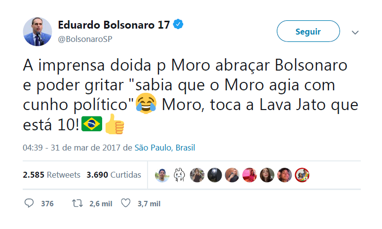 Nesses dois casos, vemos uma outra característica da tuitosfera bolsonarista, que é o de