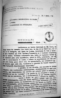 Destaco aqui relatório do DEOPS de São Paulo sobre a cerimônia de fundação da seção paulista do Comitê Brasileiro pela Anistia, na Câmara Municipal de São Paulo em 12 de maio de 1978. Além de Ruth Escobar, Franco Montoro, Hélio Bicudo, Mário Simas e outros, falou um representante, não identificado no relatório, dos Metalúrgicos do ABC:
